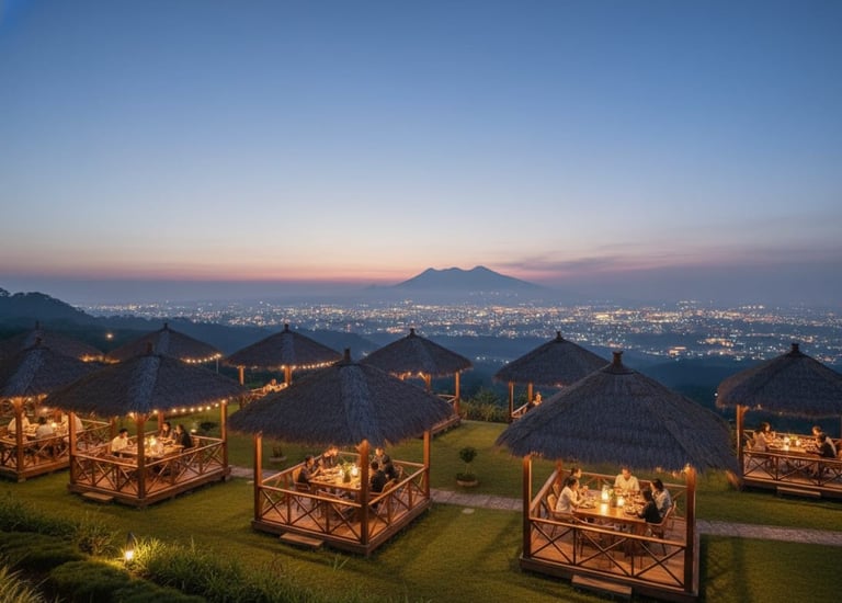 Tempat ngopi yang super nyaman dengan pemandangan menakjubkan city light dan Gunung Salak yang spektakuler!